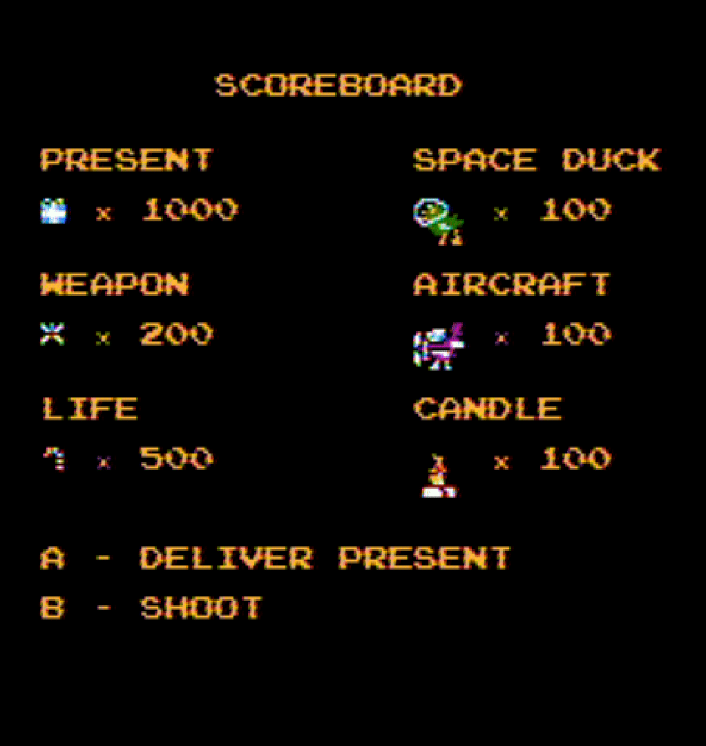 In this classic NES-style shoot-’em-up, Christmas Eve has taken a wild turn. An armada of evil Space Ducks has invaded Earth, swooping down from the stars to steal children’s presents and ruin Christmas forever. Now there’s only one hero who can stop them: Santa Claus, armed with his sleigh, a sack full of gifts, and some seriously retro firepower.